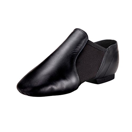 Material: Leather The jazz shoes from Pegasus Galaxy have soft and flexible leather upper which can give you perfect feeling when dance. Also, the leather upper can mold your foot's shape more perfectly. When you dance you can feel the leather shoes soft and comfort. There is a stretch fabric layer around the ach and the sides of the feet which can help the shoes shrink when you do some special dance movement. Color: Black and brown We provide black and brown shoes for you. Black dance shoes looks more charming and can dressed up with all kind of dance clothes. The brown shoes make you look younger and spirited. Style: Slip on Easy to wear, do not need to tie the shoelaces. Best style for dancer. Made by soft, durable leather. Heel: 0.8cm Not very high, and the heel will cater to the tastes of almost everyone.